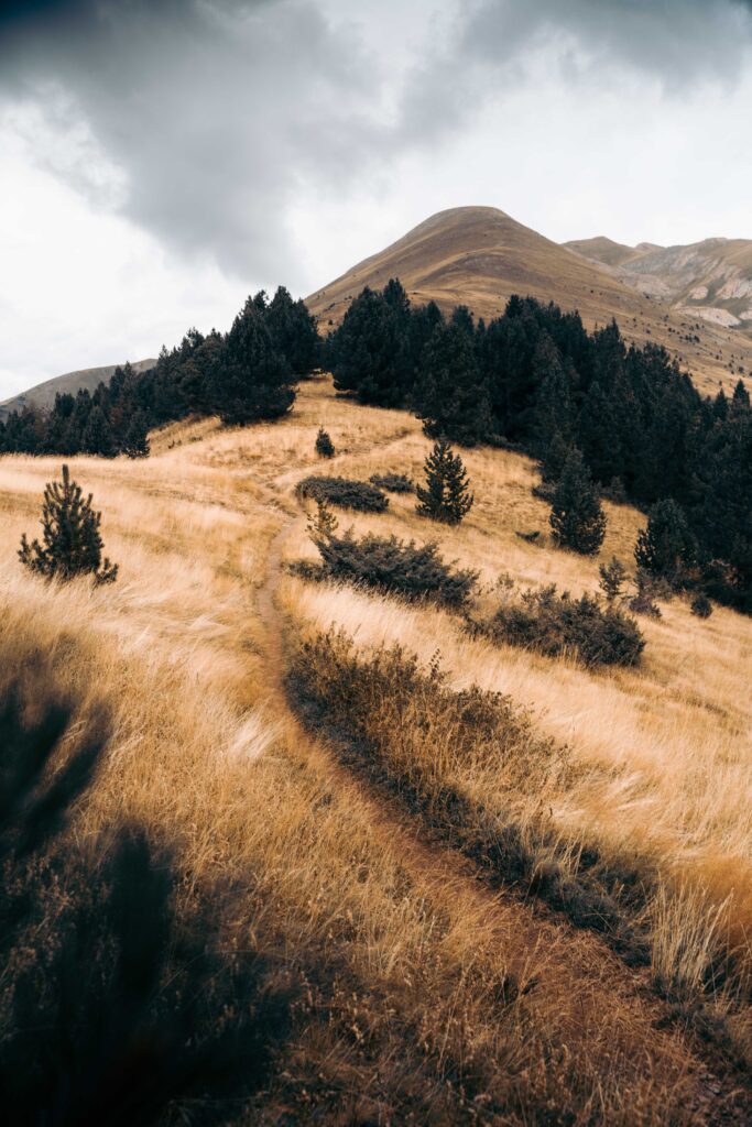 Het pad begint bij de Coll d’Ordino, een bergpas tussen Ordino en Canillo. De eerste kilometer voert me door een dicht dennenbos, waarbij de gele markeringen me de weg wijzen. Het pad is aanvankelijk vriendelijk en koel, omgeven door hoge bomen en het geruststellende geluid van vogels. Na ongeveer een halfuur laat ik de bomen achter me en kom ik in een open terrein terecht. De boomgrens is gepasseerd en de omgeving wordt steeds rotsachtiger.