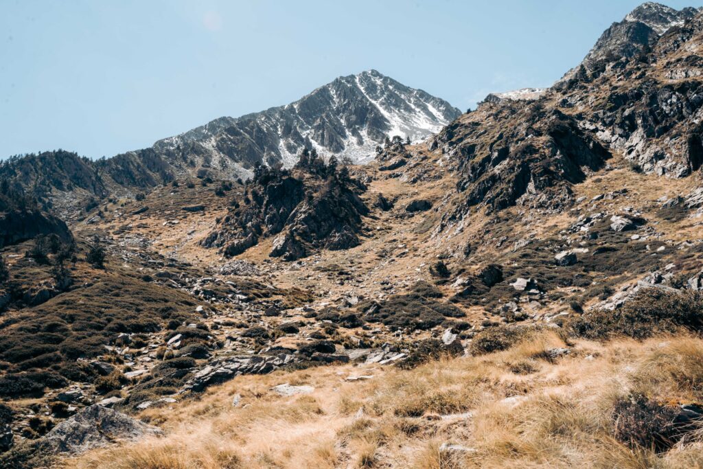 De klim wordt ook pittiger naarmate ik hoger kom, met losse stenen en steile stukken die mijn uithoudingsvermogen op de proef stellen. Het pad leidt quasi recht naar boven zonder al te veel bochten, wat de beklimming extra uitdagend maakt. Het uitzicht is echter adembenemend. Vanaf de bergkam heb ik zicht op de omringende toppen, zoals de imposante Comapedrosa en de Serrera. Het is een moment van pure verwondering, ook al ben ik bij momenten buiten adem en voelen mijn benen zwaar aan.