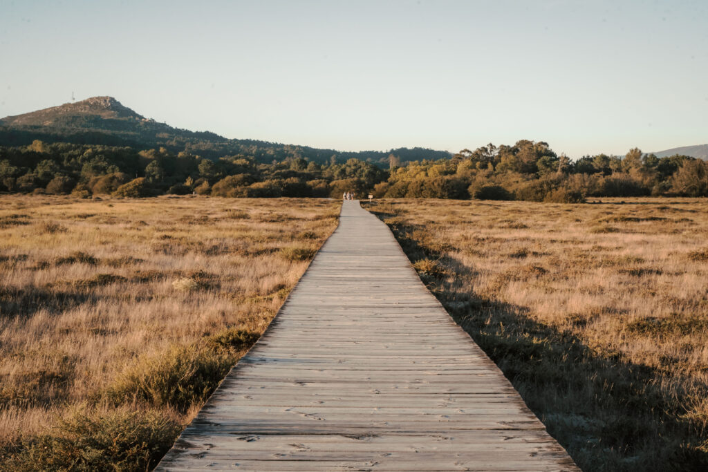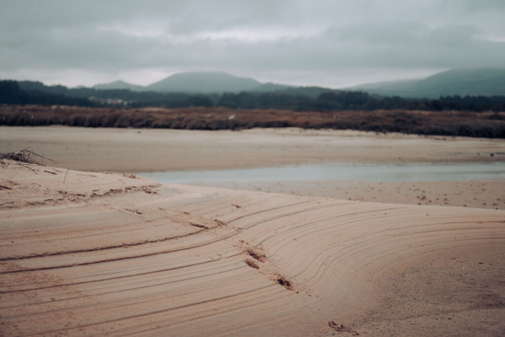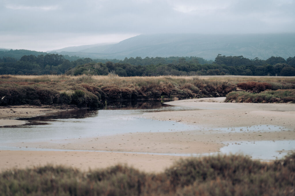 We staan te popelen om onze benen (en poten) te strekken en trekken onmiddellijk naar het startpunt van ons kampeeravontuur, het duingebied van Corrubedo. Gelegen aan de zuidkant van de Ría de Muros e Noia, de zeearm die de komende week niet van onze zijde zal wijken, herbergt dit nationale park niet alleen grote zandduinen, maar ook natte gebieden met zoetwaterlagunes en zoutmoerassen.