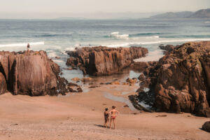 In dit land waar kabbelende rivieren door de talrijke valleien slingeren, lijkt de tijd tot rust gekomen. Wij daarentegen zetten onze reis voort naar de westkust, waar het geluid van krachtige golven die breken op scherpe rotsen en neerslaan op okergele zandstranden, ons lijkt te roepen.