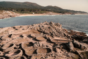 In de vroege ochtenduren, wanneer de zon nog schuchter over de horizon gluurt, rijd ik langs de kust naar Castro de Baroña. De ruïnes hier, gebeeldhouwd door de handen van een lang vervlogen volk, getuigen van een rijk en oud verleden en kijken uit over over een prachtige baai. Ik loop tussen de stenen door die ooit huizen en forten waren, en kan de verhalen van vroeger bijna horen.