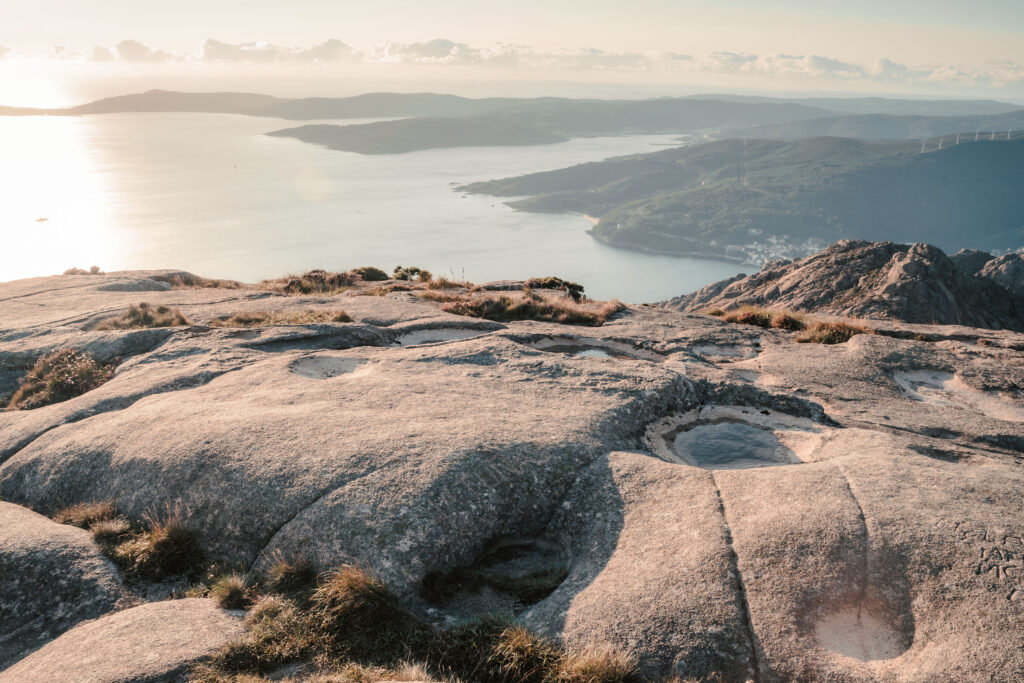 Met een gevulde buik reis ik verder naar Monte e Lagoa de Louro, een adembenemende combinatie van berg en lagune. Volgens de legende verdween er een dorp in dit watergebied en was de berg Louro in de oudheid een zonnetempel, net als Kaap Fisterra waar we later naartoe trekken. Het aanpalende strand, Praia de Area Maior, gekend omwille van zijn surfmogelijkheden, biedt een spectaculair uitzicht op Monte Louro. Deze imposante berg, die driekwart omringd is door de oceaan, torent boven het landschap uit en biedt vanaf zijn top een indrukwekkend panorama op de omgeving. Hier breng ik de rest van de dag door, genietend van de neergaande avondzon en het geweldige uitzicht, al mijmerend over de natuurlijke schoonheid van deze plek.
