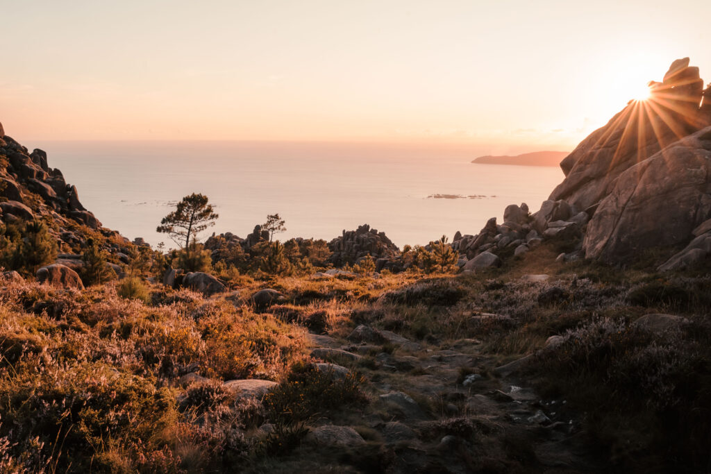 Van die beslissing zou ik geen spijt hebben, want de stevige inspanning wordt beloond met een betoverend vergezicht over de Atlantische Oceaan en -aan de andere kant – het weelderig groene, heuvelachtige binnenland van Galicië. Vanaf de top, terwijl de zon langzaam ondergaat en de oceaan baadt in een zee van goud, beleef ik het absolute hoogtepunt van mijn reis – een moment van pure betovering en onvergetelijke schoonheid. Dit is waarom ik zo hou van reizen.