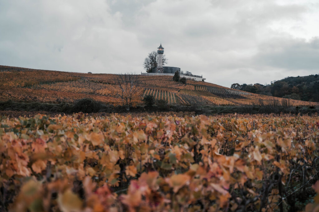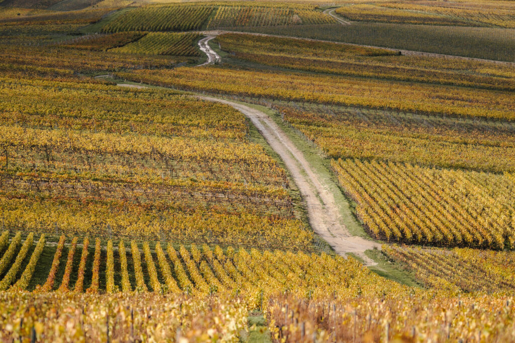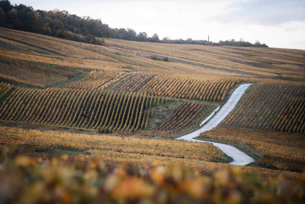 Mijn eerste bestemming? Sacy! Eenmaal aangekomen, en met de herfstlucht die mijn longen vult, trek ik mijn stevige wandelschoenen strakker. De beboste heuvels zijn mooi, maar het terrein is vandaag verraderlijk drassig. Ik wandel door een lappendeken van wijnranken, waar sommige ongeoogste druiventrossen nog nazinderen van de zomerzon. Het aanzicht is echter wondermooi, en op deze frisse novemberdag is er haast niemand te bespeuren.