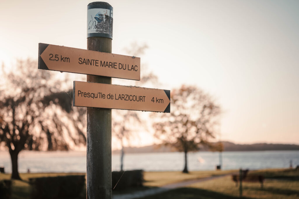 De ochtend breekt aan en ik beslis naar de andere kant van het enorme meer te trekken. Ik stuur richting het groenere Presqu’île de Champaubert, waar de mogelijkheid tot wildkamperen met de druppelcaravan een extra dimensie aan de kampeer-ervaring geeft.