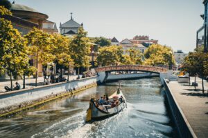Via Figuiera da Foz, bekend om zijn brede stranden en casino, trekken we naar Aveiro. Vanwege de pittoreske kanalen en kleurrijke moliceiro-boten wordt deze stad ook wel eens het Venetië van Portugal genoemd, maar dat is voor ons toch een brug te ver. Wij kijken eerder uit naar het charmante Porto, en die gedachte doet onze gemiddelde pedaalslag per minuut alvast stijgen. Eenmaal aangekomen laten we een zucht van contentement ontsnappen.