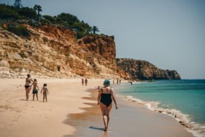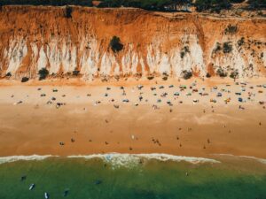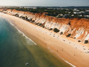 Na genoten te hebben van de lokale keuken in Lagos, trekken we ’s anderendaags verder richting Praia da Falesia, een klif die zowel indrukwekkend is in omvang als in schoonheid. Praia da Falesia strekt zich uit over kilometers met fijn, goudkleurig zand, geflankeerd door opvallende rode kliffen die een scherp contrast vormen met het helderblauwe water van de Atlantische Oceaan. De kalme golven zijn bovendien ideaal voor een ontspannen duik.