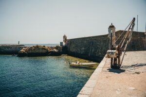 Bij aankomst in Sagres worden we begroet door een erg stevige wind en de krachtige golven van de oceaan, alsof de zeegod Poseidon besloot zijn kracht te tonen. Een absolute aanrader is een bezoekje aan de Farol do Cabo de Sao Vicente, gelegen op de daadwerkelijke hoek van het Portugese vasteland en een geweldige plek om te genieten van een onvergetelijke zonsondergang boven de oceaan. Wij overnachten in de nabijgelegen Orbitur-camping, waar goede vibes en koude drankjes de perfecte afsluiting vormen van een avontuurlijke dag.